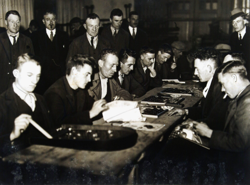 In de jaren '30, toen de werkloosheid extreem hoog was, richt Helpt Elkander zich op het ondersteunen van hun werkloze leden (1935)