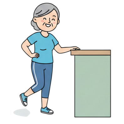 Houd je eventueel vast aan een tafel of stoel. Sta 10 seconden op één been. Wissel daarna van been.