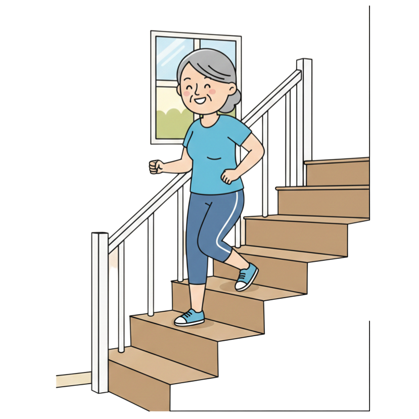 Heb je een trap in huis? Loop die dan rustig een paar keer extra op en neer.